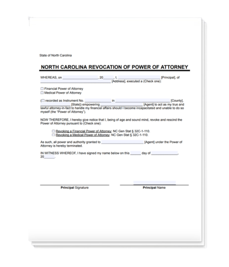 Free North Carolina Power of Attorney Revocation Form | PDF & Word